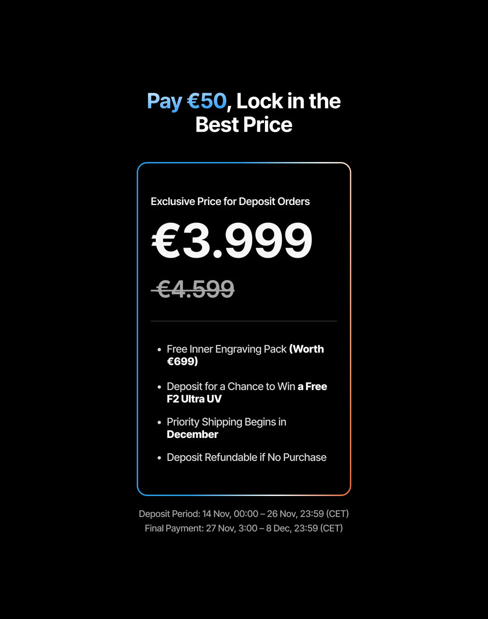 We highly recommend completing your balance payment as soon as the channel opens on 27 Nov to secure priority in the first batch.