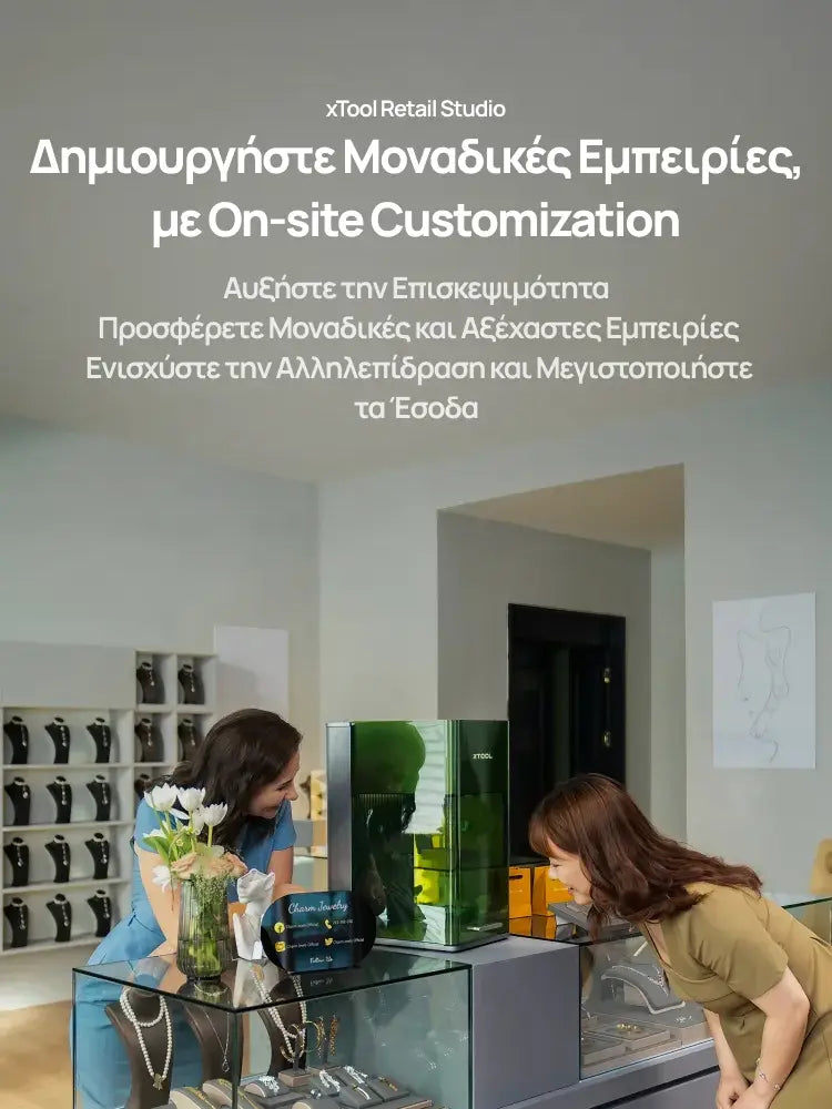 Το xTool Retail Studio προσφέρει μια ολοκληρωμένη και βελτιστοποιημένη λύση σχεδιασμένη ειδικά για την επιτυχία στο λιανεμπόριο, που ξεπερνά κατά πολύ μια απλή μηχανή χάραξης λέιζερ.