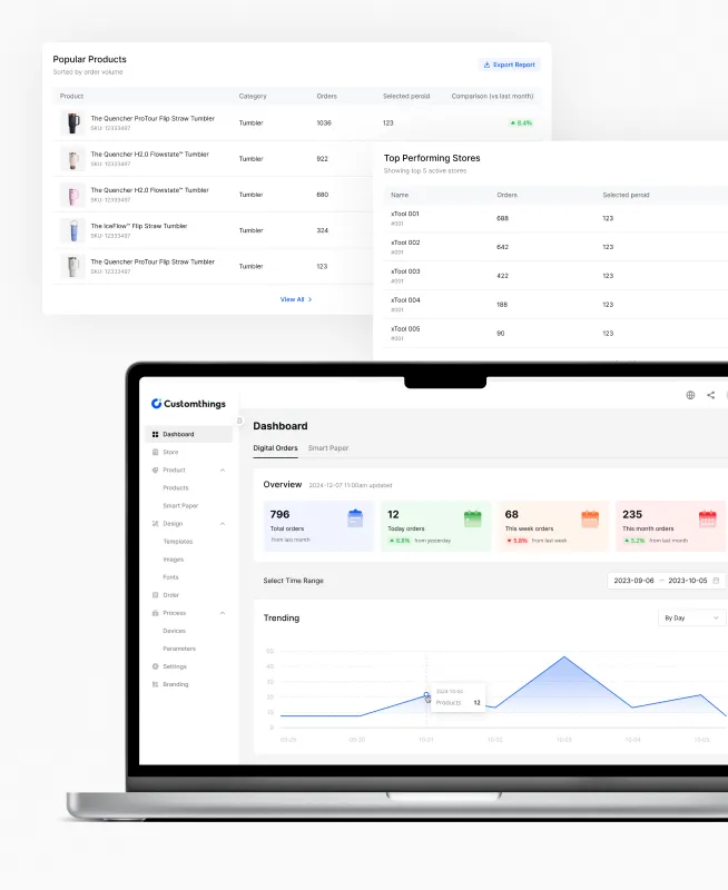 Το εύχρηστο λογισμικό Customthing απλοποιεί τη διαδικασία εξατομίκευσης για το προσωπικό σας, χωρίς να απαιτούνται εξειδικευμένες τεχνικές γνώσεις. Διαθέτει προηγμένες λειτουργίες για δημιουργία σχεδίων, διαχείριση εργασιών και διασφάλιση σταθερών, υψηλής ποιότητας αποτελεσμάτων, καθιστώντας την εξατομίκευση στο κατάστημα γρήγορη και ομαλή.