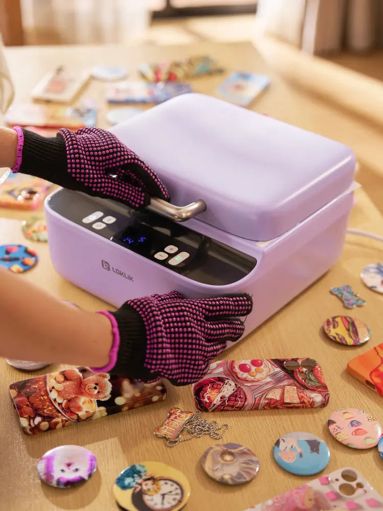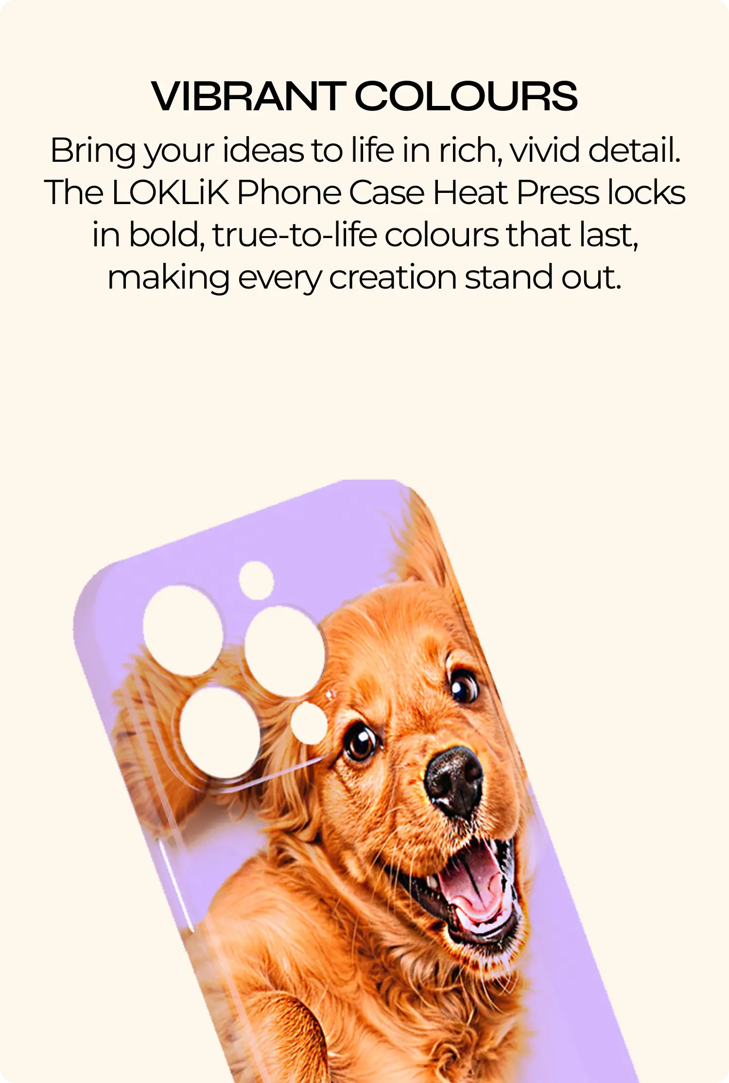 Turn plain phone cases into eye-catching, personalised masterpieces with the LOKLiK Phone Case Heat Press. And that is just the beginning. Sublimate button badges, coasters, pet tags, watch bands, and much more.
