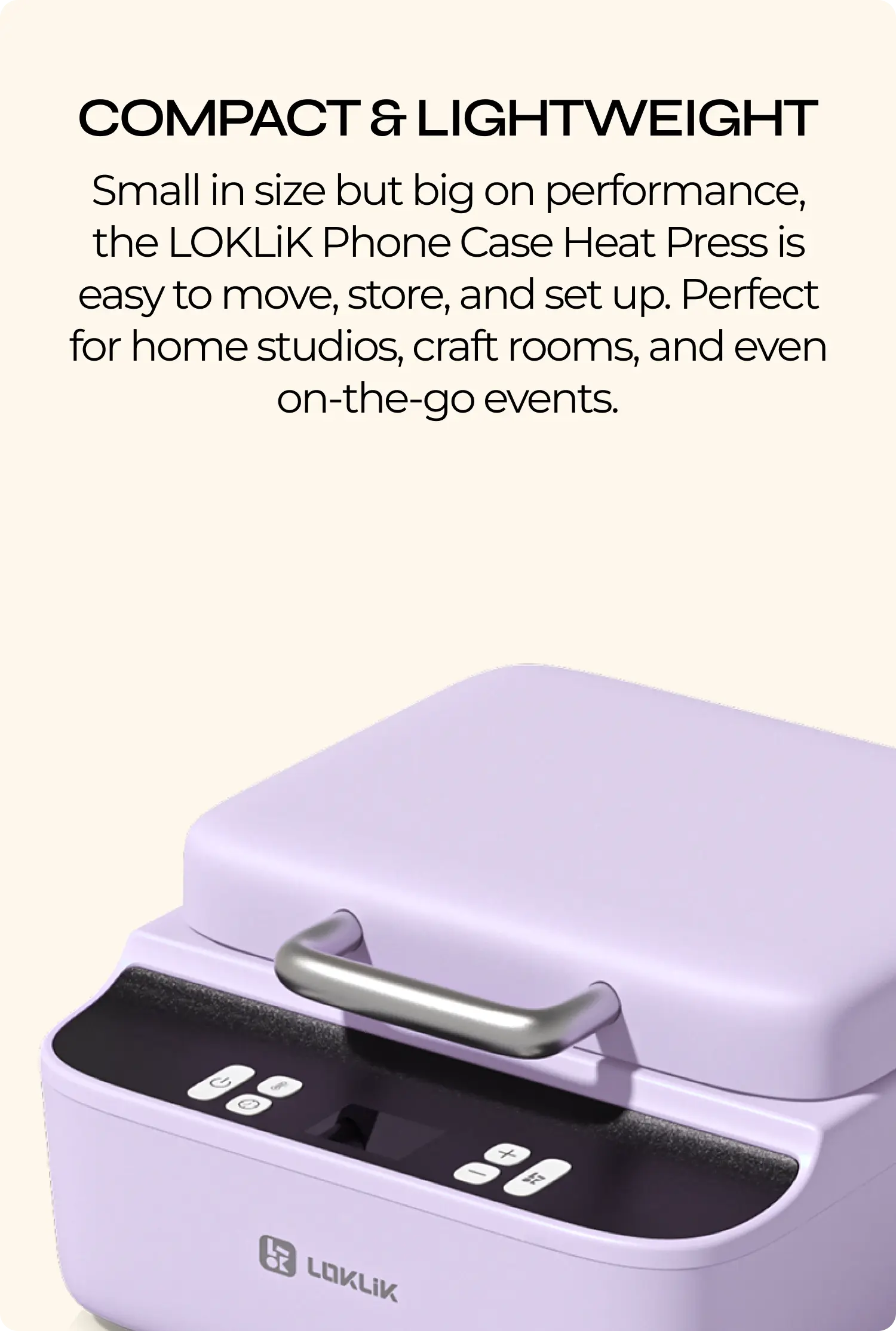 The LOKLiK Phone Case Heat Press includes fixtures for both iPhone and Android, so you can start creating right away. Need extras? Spare fixtures are available anytime to keep your production running smoothly.