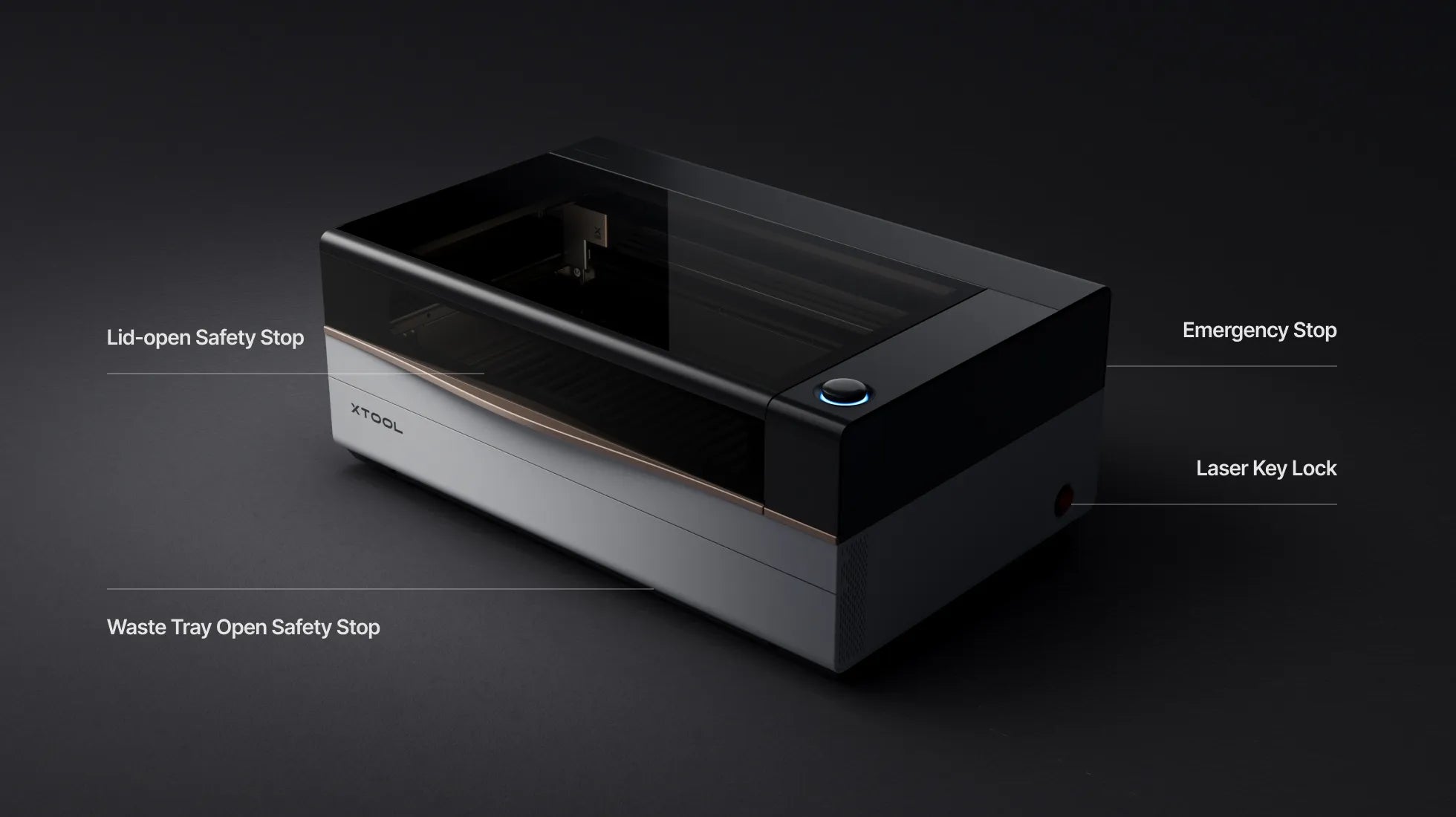 Certified Class 1 Safety. From the lid-open and waste tray safety stops, to the emergency stop button and laser key lock, P3 ensures maximum protection while delivering professional power.