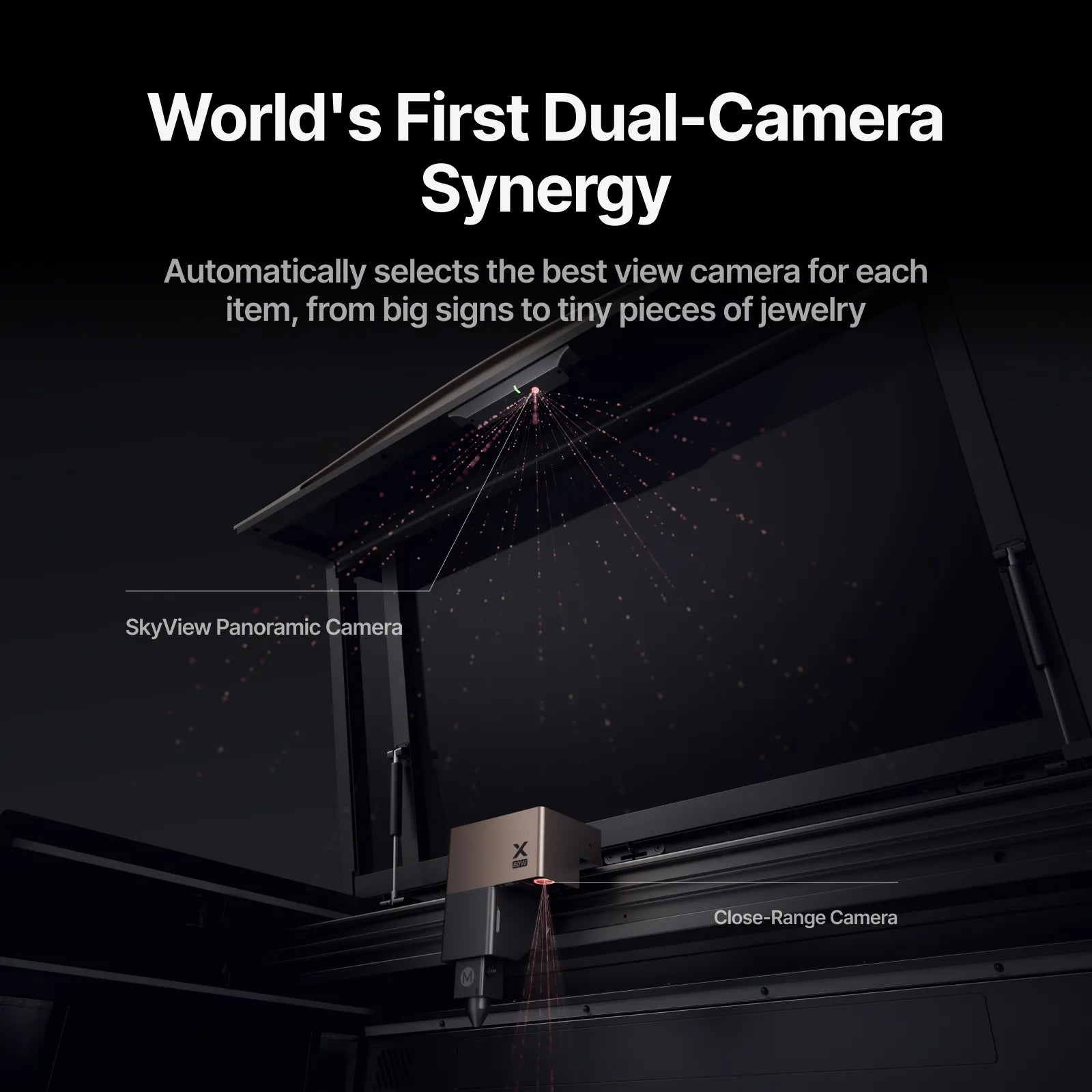 • Auto-Positioning: Simply close the lid. A high-resolution, dual-camera system (16MP SkyView camera and a close-range detail camera) instantly captures a live image of the entire workspace. This allows you to place your design onto the material with pinpoint accuracy directly in the software.