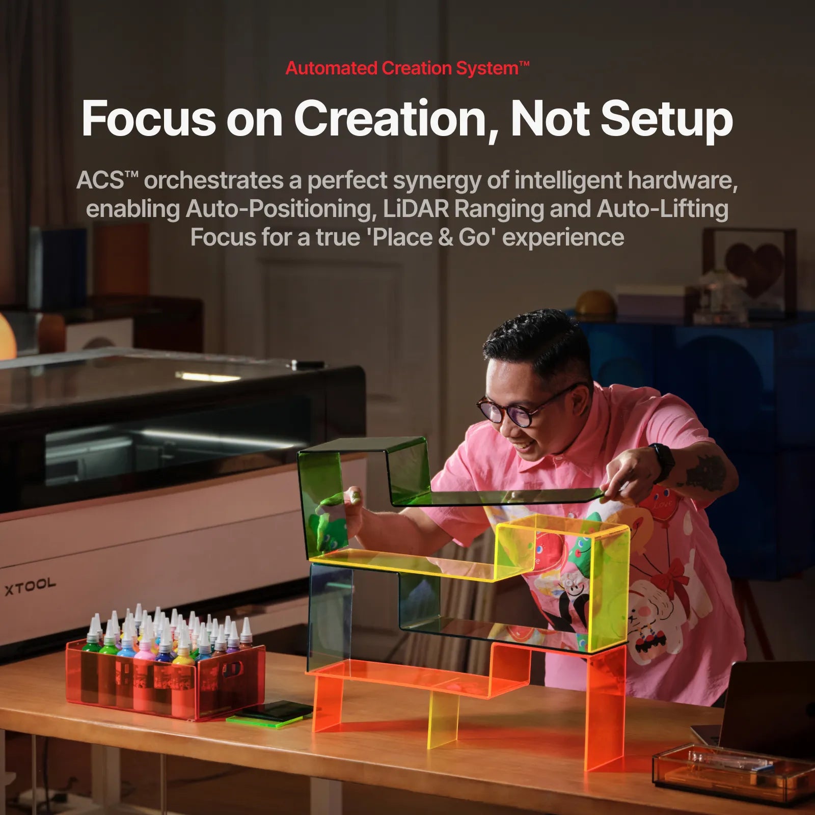 P3's revolutionary ACS™ (Automated Creation System™) workflow completely frees users from tedious manual setups, achieving an ultimate convenience of "place your material and go." It makes technology serve creativity, rather than hinder it, ensuring every creation is precise, flawless, and seamless. Workflow to Achieve Hardware Synergy :