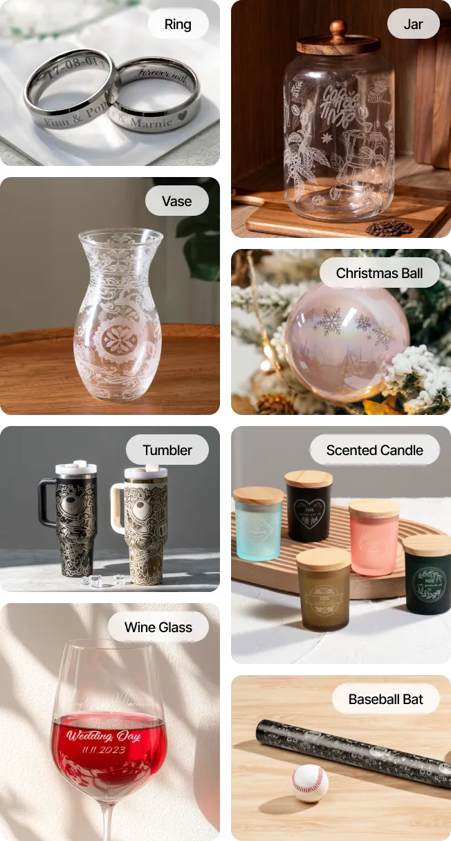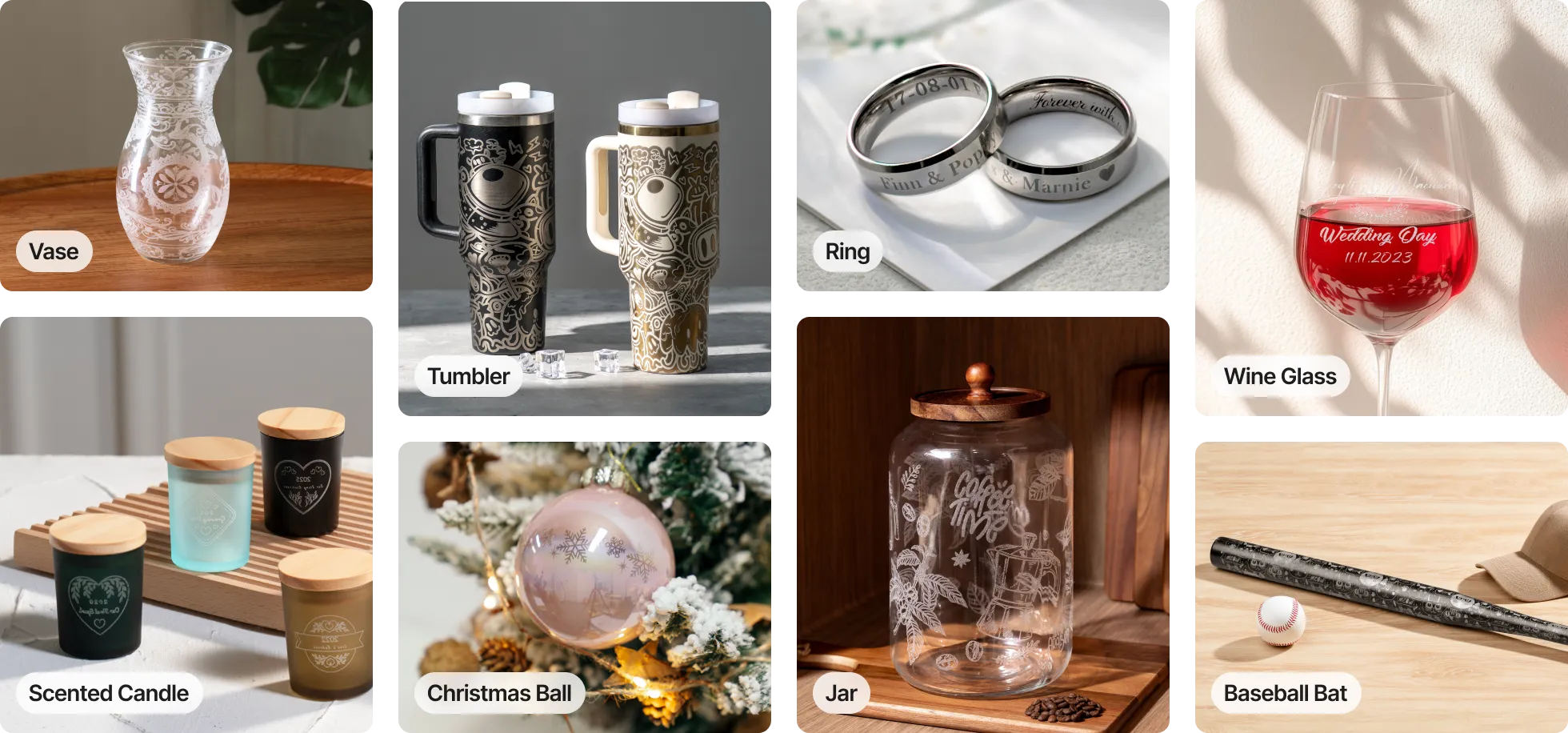 Efficiently handle batch orders of mugs, long objects, or rings by securely preparing the next item while the first one engraves.