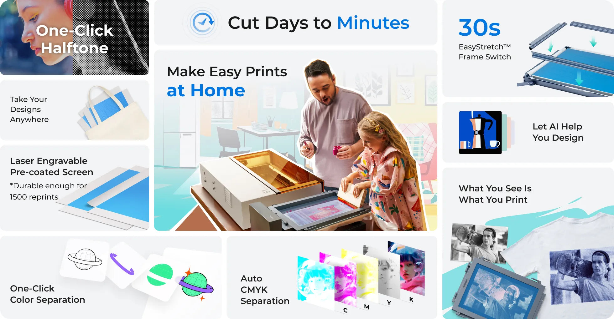 Laser & Screen Printing : Revolutionary One-Stop Solution. Compatible with S1, D1Pro, D1, P2, M1, M1 Ultra, F1 Ultra