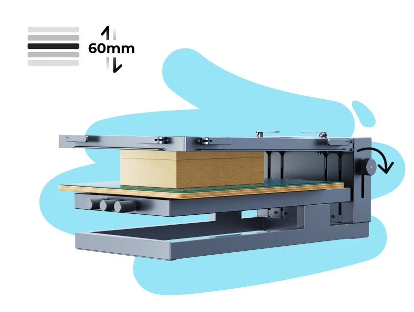 Discover unmatched convenience with xTool's piston-driven Z-axis auto-press, allowing you to print on objects up to 60mm thick. Easily adjust the height without extra steps when switching between materials!